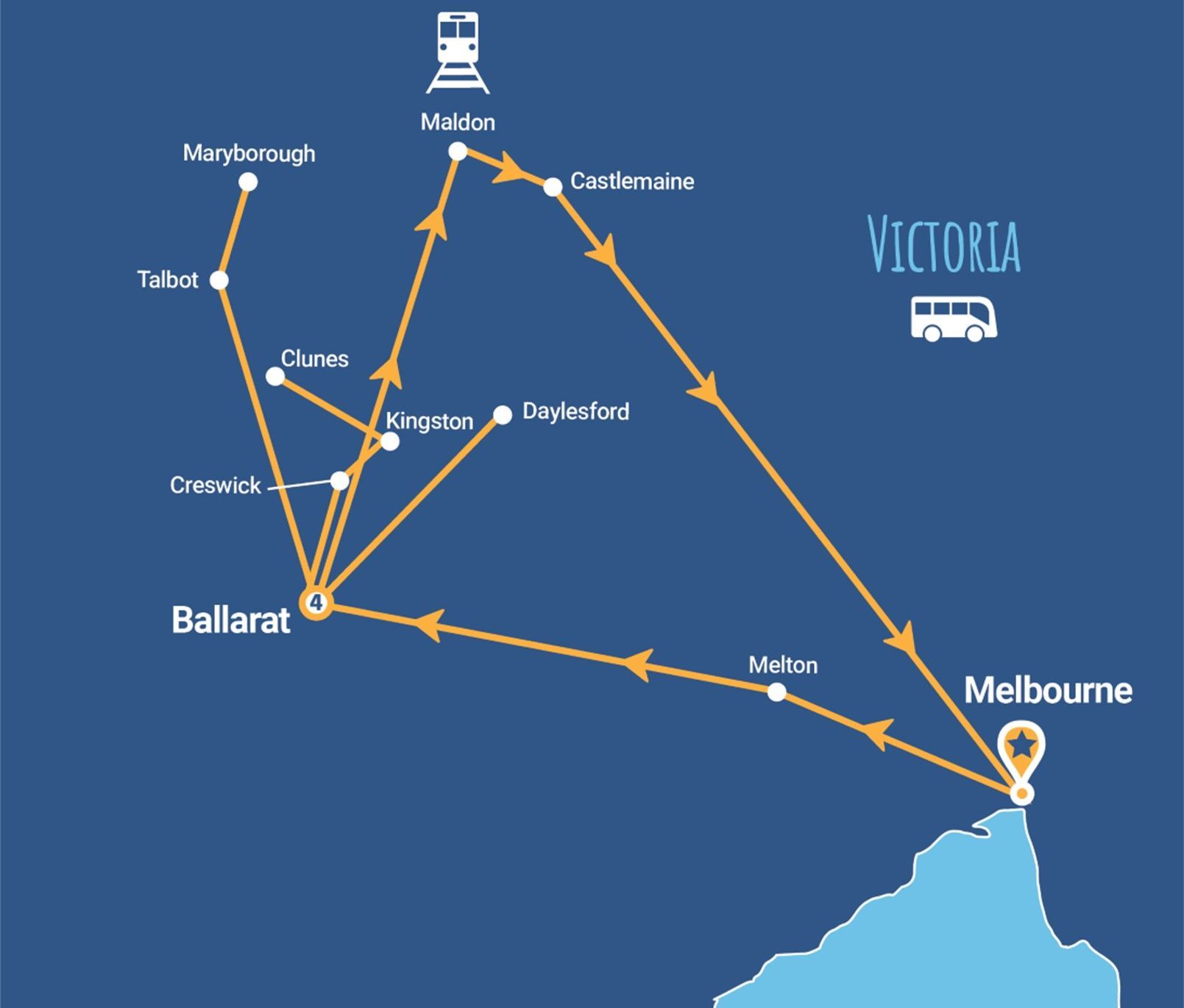 Australian Gliding Museum Melton, Locally guided tour Ballarat, Overwrought Sculpture Garden and Gallery, The Convent Gallery Daylesford, The Amazing Mill Market, Fireworks Spectacular Ballarat, Lindsay Art Trail Creswick, Creswick Woollen Mill, Talbot Arts and Communications Museum, Locally guided tour Maryborough and Locally guided tour Maldon.